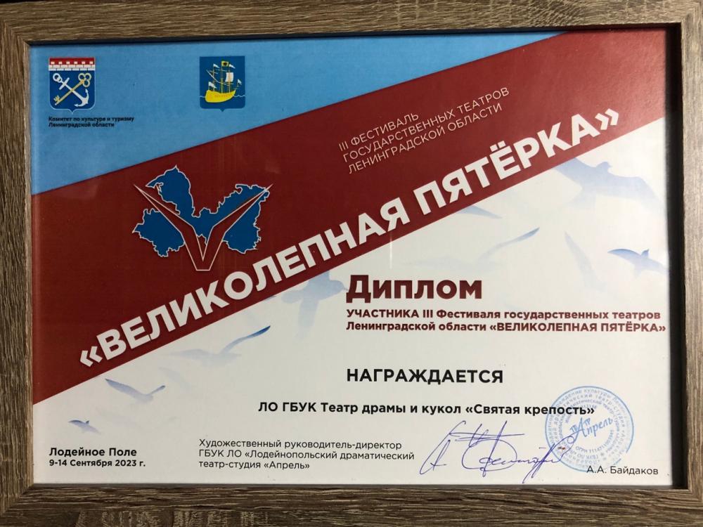 12 и 13 сентября труппа «Святой крепости» успешно выступила на фестивале областных театров «Великолепная пятерка» в Лодейном Поле. Артисты представили вниманию зрителей премьеру минувшего сезона «Дуры мы, дуры» и кукольный спектакль «Принц и море».