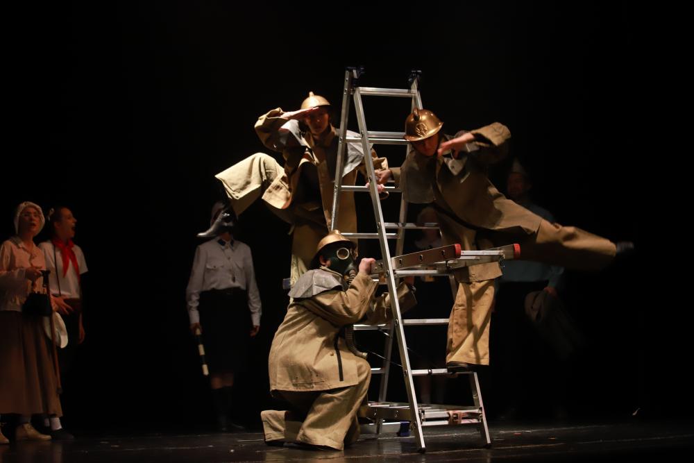 Отдельно отметим песни Владимира Высоцкого, которые режиссер также включил в постановку. Это хорошо известные композиции, посвященные Великой Отечественной войне. И не только. Они выражают эмоции людей в ситуациях на грани жизни и смерти. Они заставляют зрителей задуматься о тяжелейших испытаниях, которые выдержали наши деды и прадеды. Они о тех, кто «не вернулся из боя», о том, какие «нужные книги ты в детстве читал».