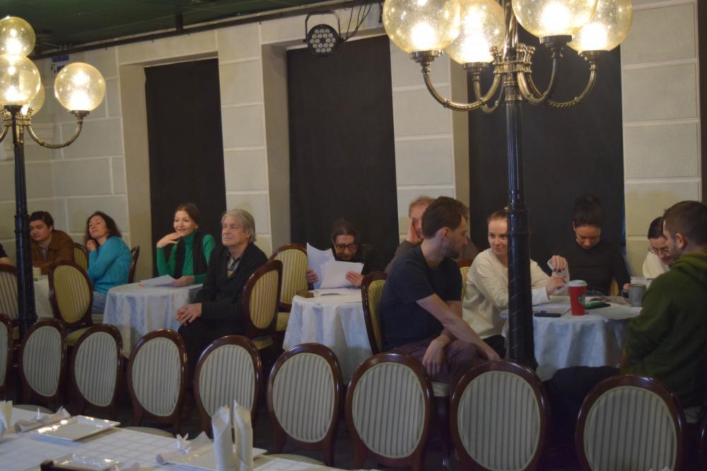 Вероятно, в работу пойдет пьеса драматурга из Луганска Светланы Тишкиной «Женщины». Это произведение повествует о судьбе обычной семьи из нынешнего Донбасса, женщины и дети которой выживают годами дома в тылу.
